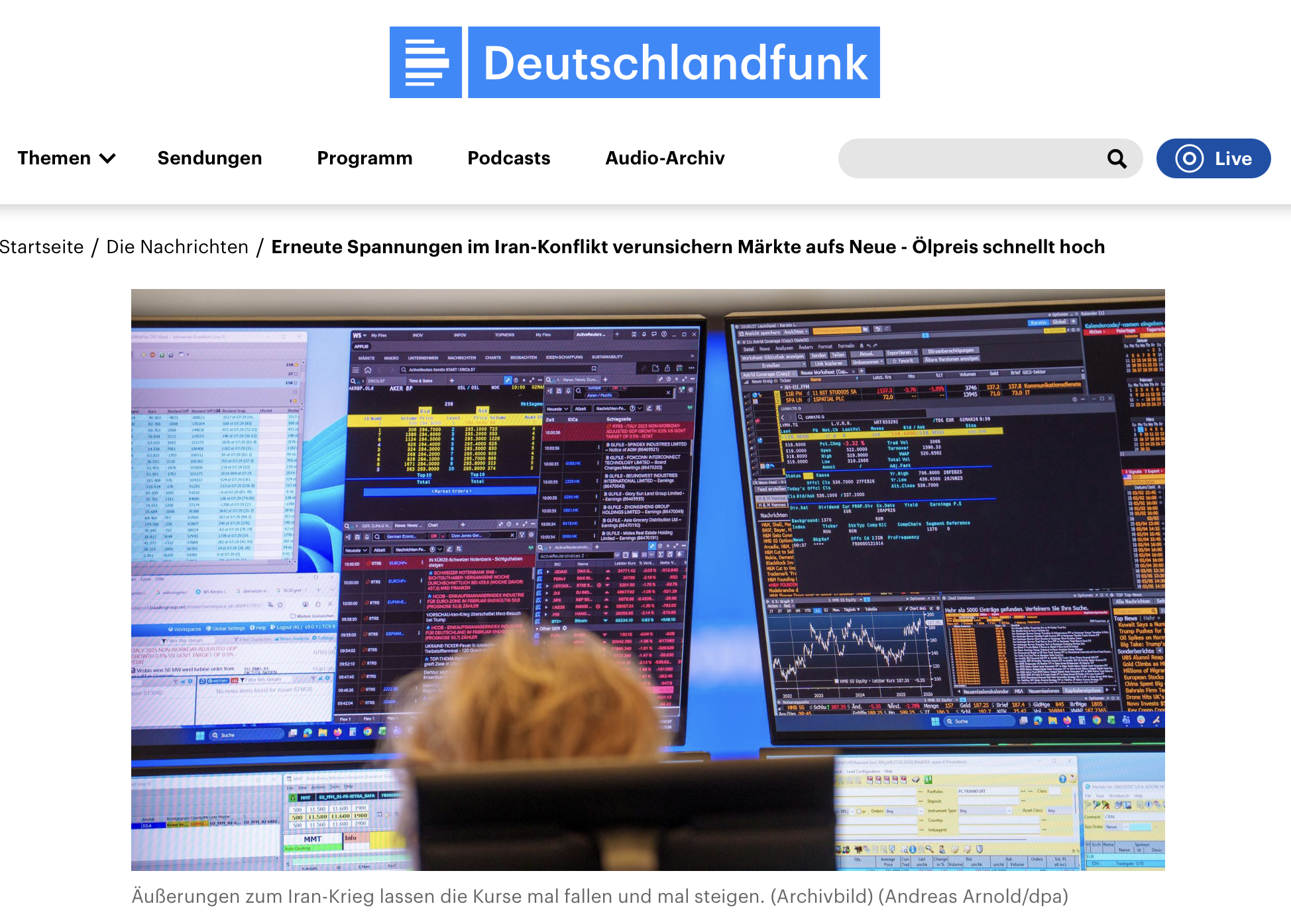 Die neuen Spannungen zwischen den USA und dem Iran haben die Finanzmärkte nach der Beruhigung vergangene Woche erneut verunsichert. Im frühen asiatischen Handel stieg der Ölpreis wieder an und Aktienkurse gaben nach. Hintergrund sind Berichte über eine Absage des Irans an die für heute geplanten Friedensgespräche mit den USA im Vermittlerstaat Pakistan.