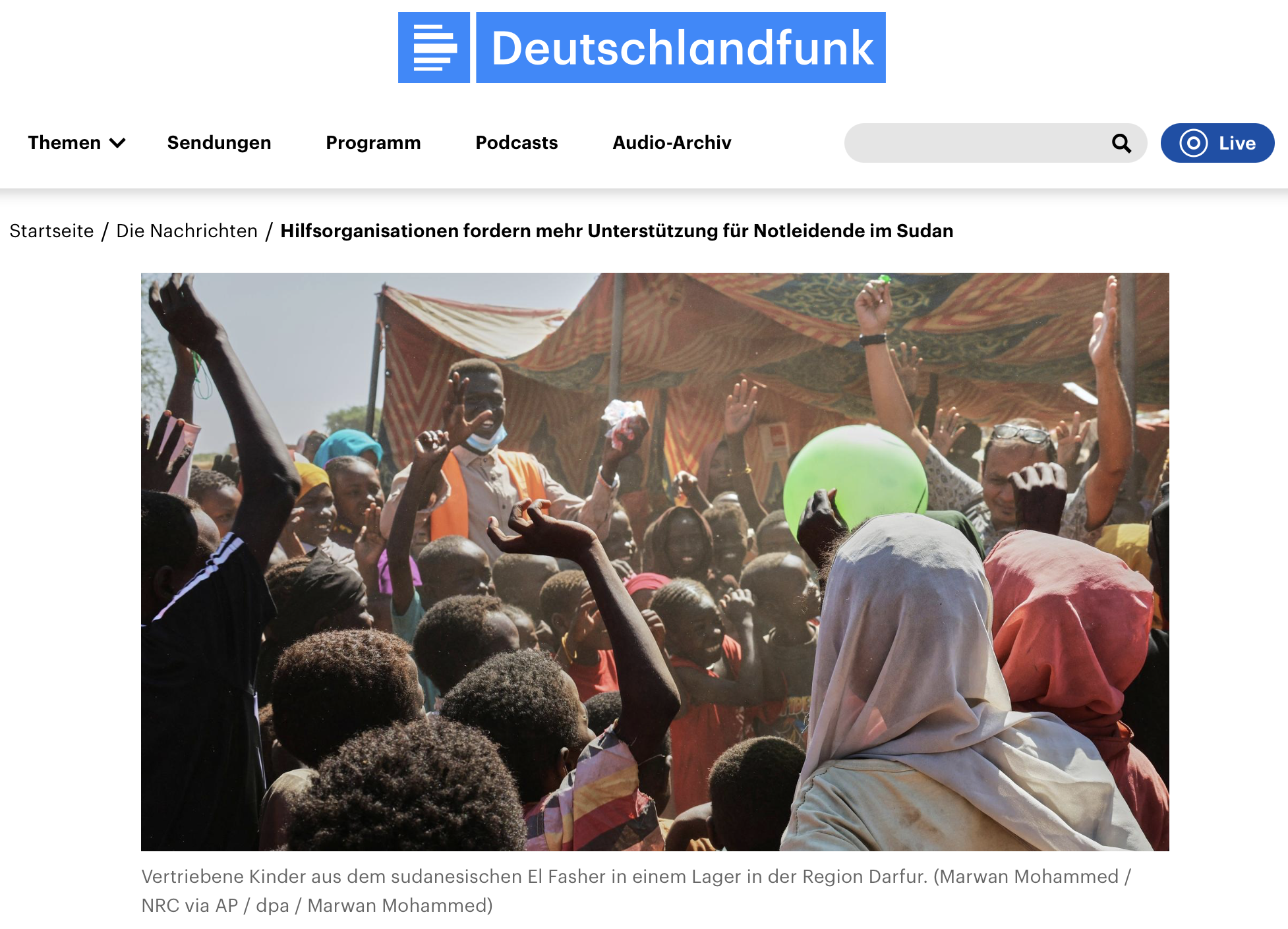 Weiterlesen: https://www.deutschlandfunk.de/hilfsorganisationen-fordern-mehr-unterstuetzung-fuer-notleidende-im-sudan-100.html