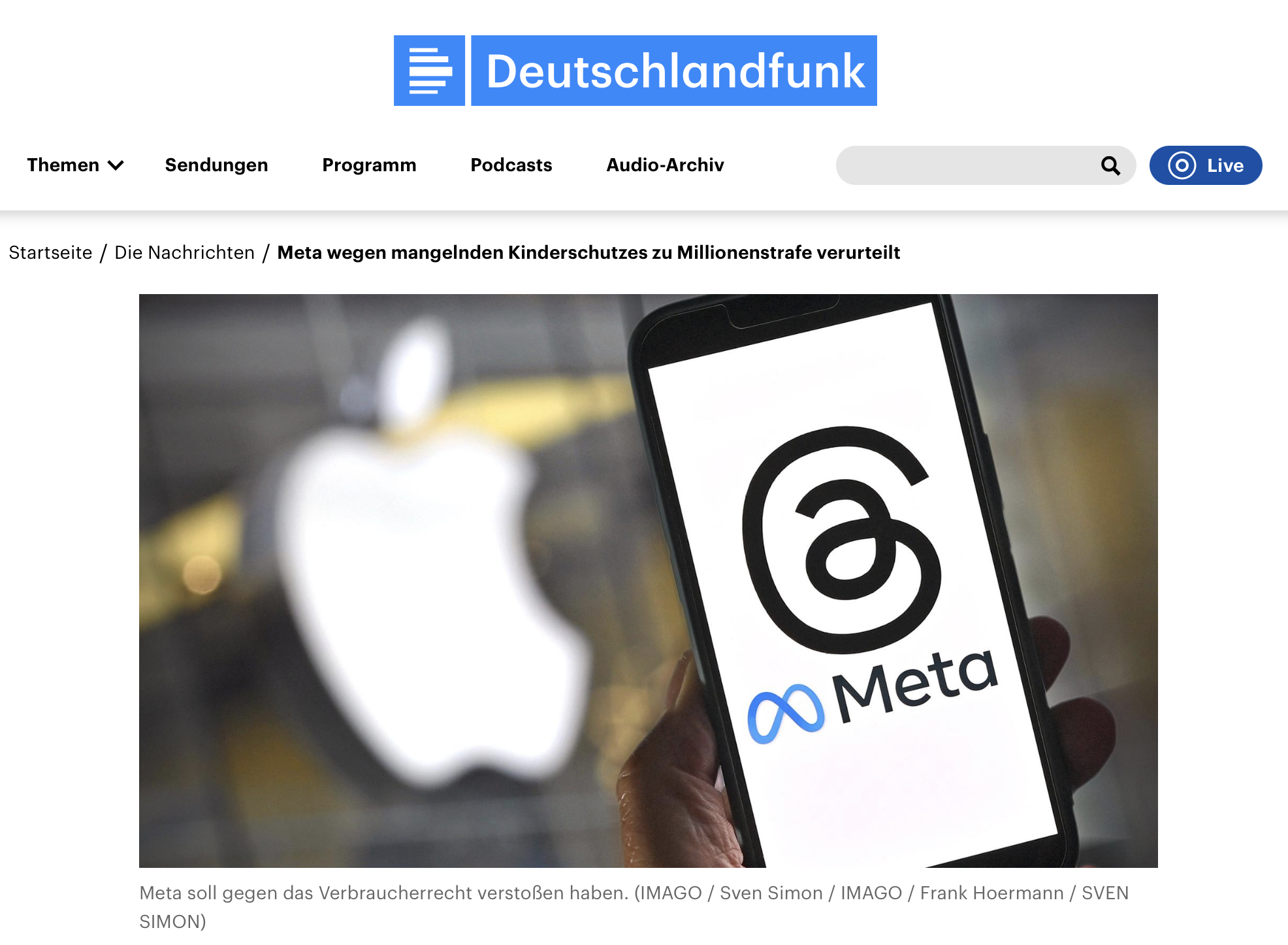 Der Techkonzern Meta ist in den USA wegen mangelnden Schutzes von Kindern zu einer Strafzahlung von 375 Millionen Dollar verurteilt worden. https://www.deutschlandfunk.de/meta-wegen-mangelnden-kinderschutzes-zu-millionenstrafe-verurteilt-100.html